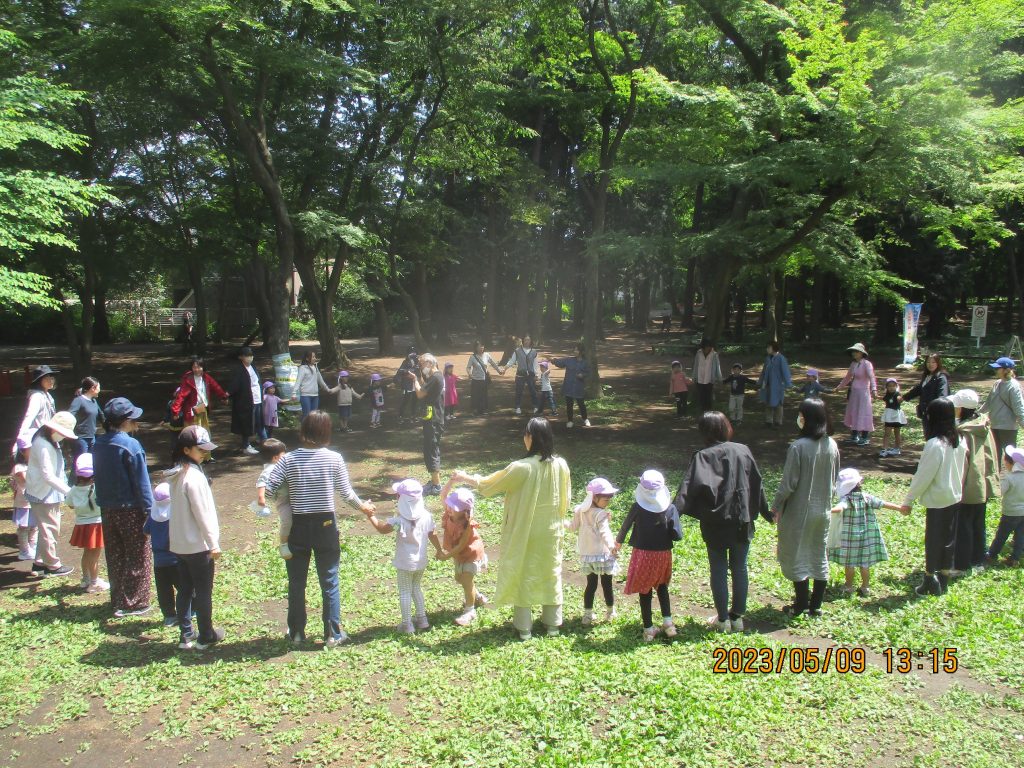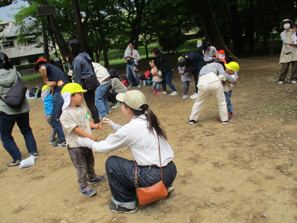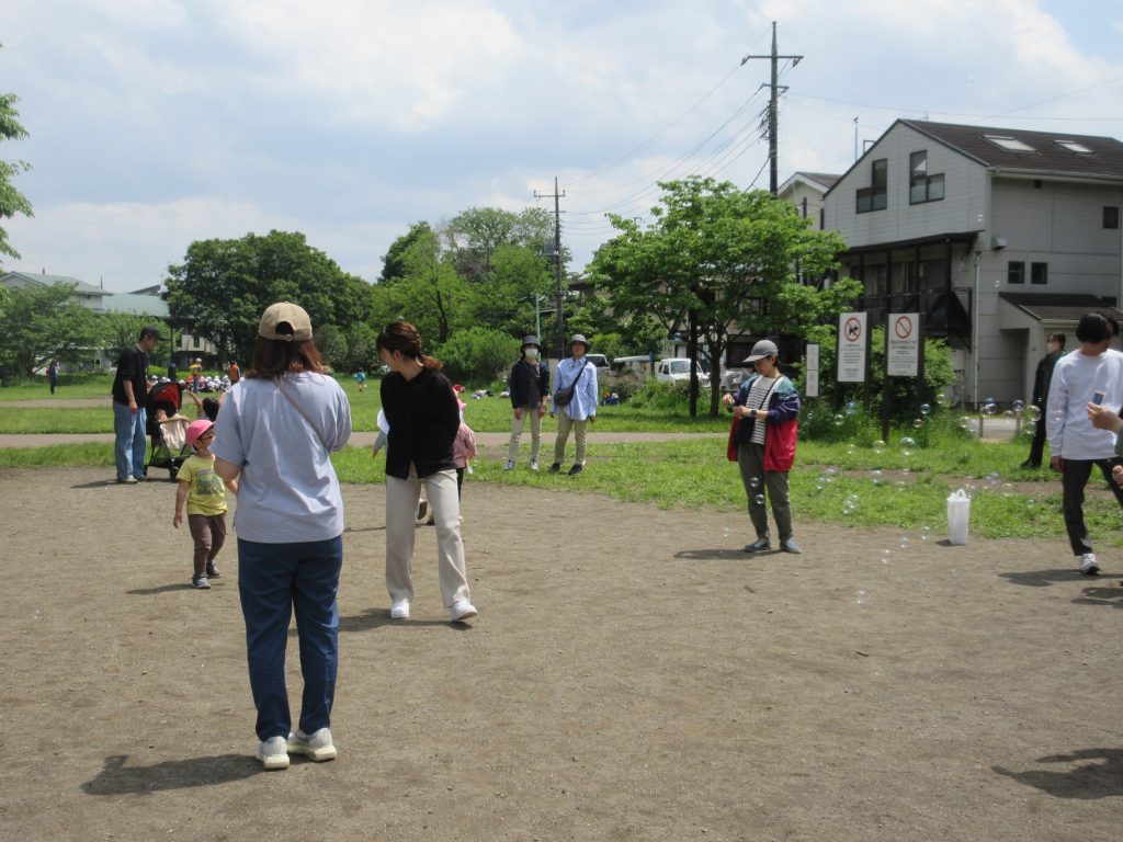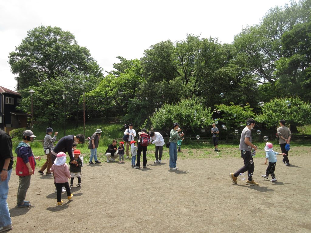 年少組は、おうちの方と一緒に遊べたことが嬉しかったようです。広い野原でシャボン玉をしたり川を渡ったり初めての遠足を満喫しました。