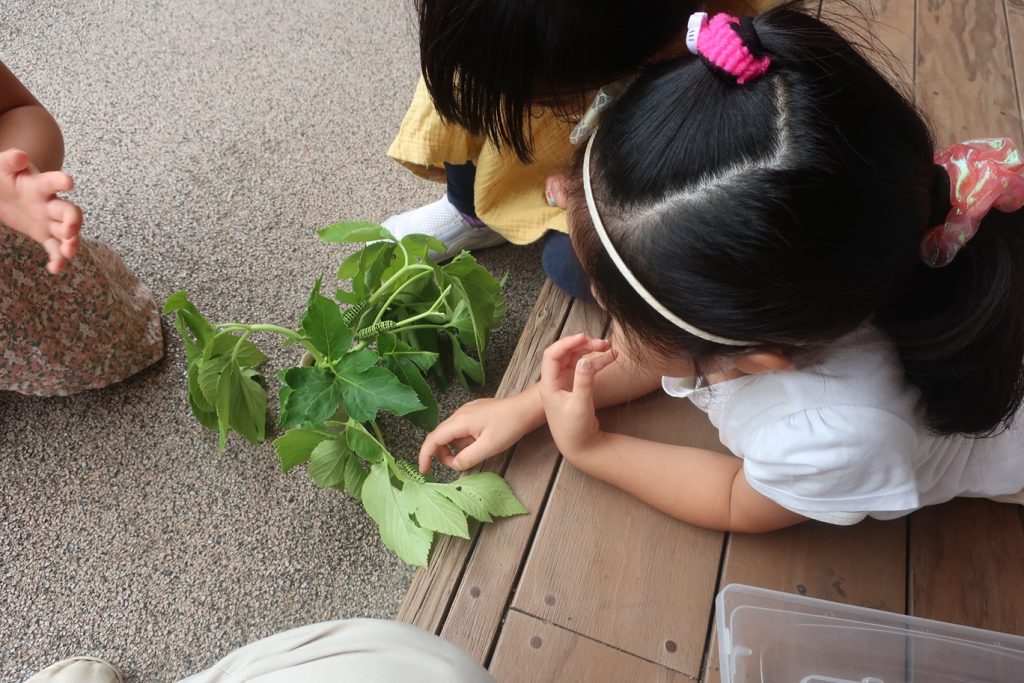 バッタやセミやトンボを追いかけたり、アゲハの青虫のお世話をしたり、