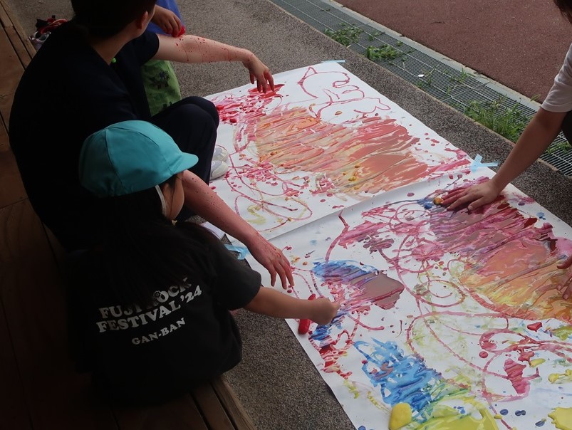 氷絵の具でのお絵かき、泡遊び、チョークでお絵かきなど、造形活動も楽しみました。