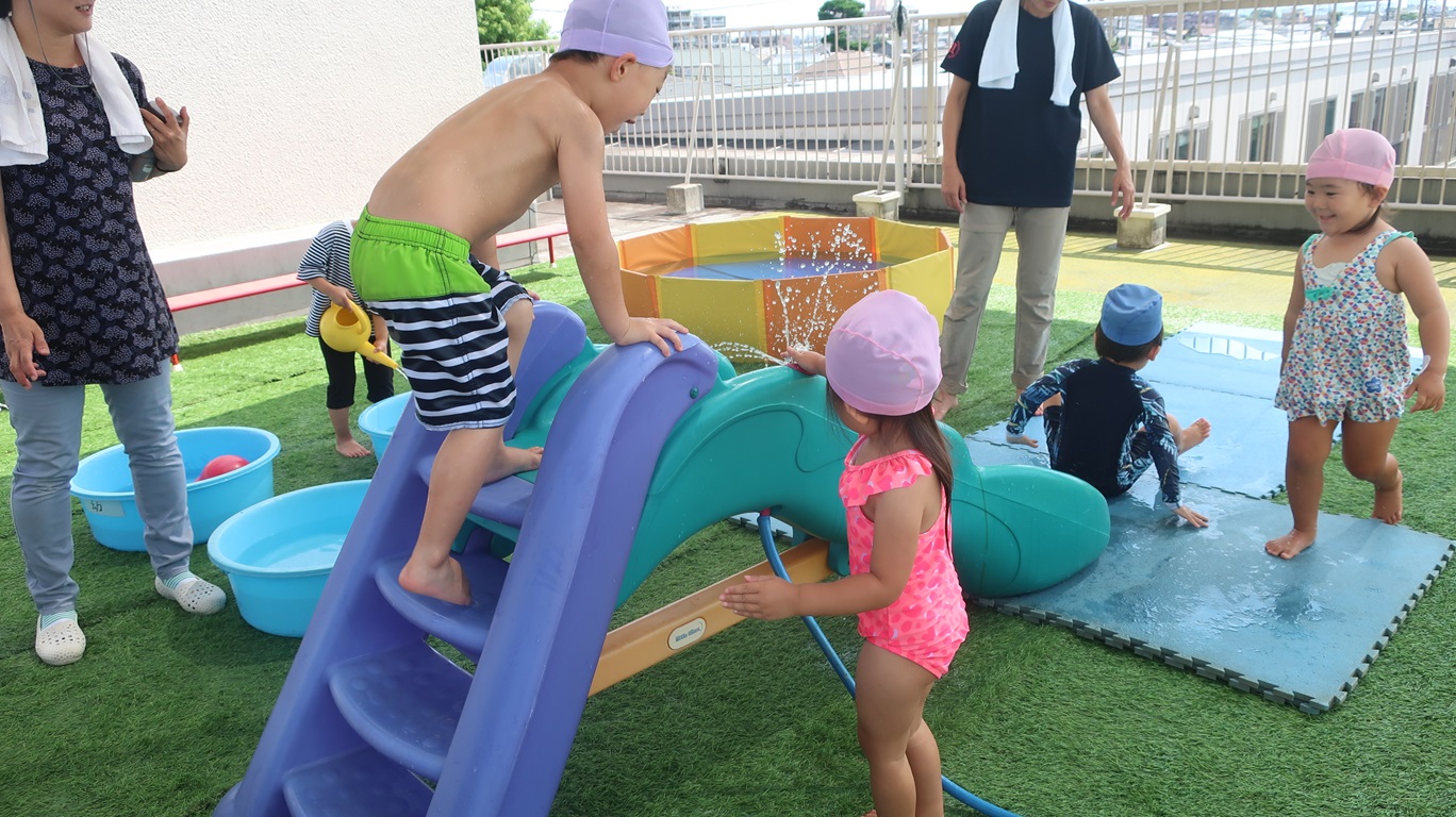 プールや水遊びは毎日ですが、広いホールで思い切り身体を動かしたり、