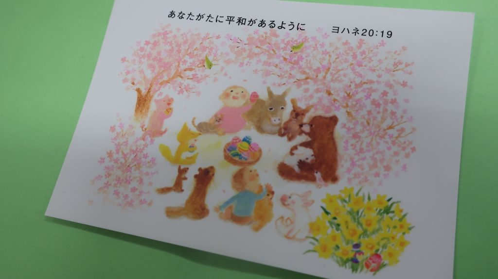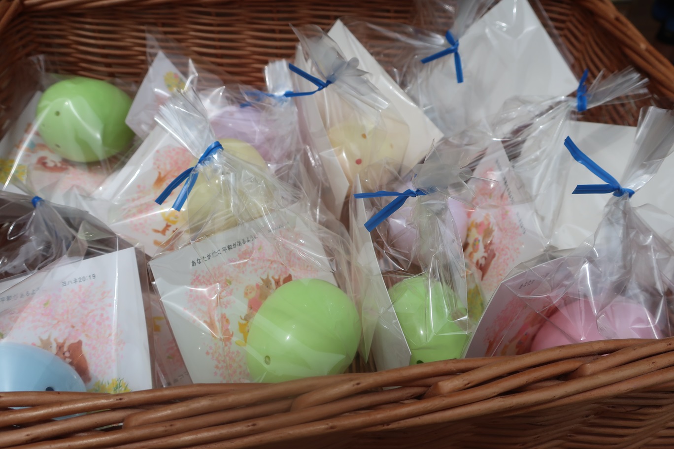イースターエッグにはカードがついていて、「あなたがたに平和があるように」という聖書の言葉が書かれています。世界中が平和になり、みんなが笑顔で過ごせるといいですね。