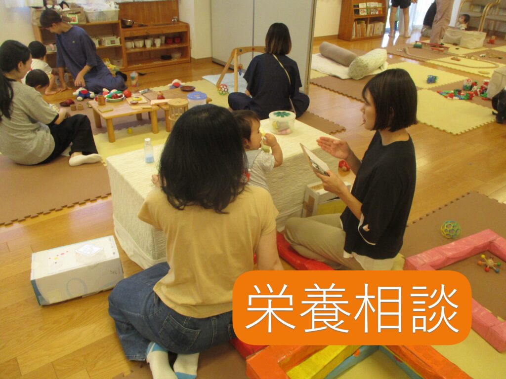 月初めの火曜日には保育園看護師による健康相談、月末の木曜日には、栄養士による栄養相談があります。お子さんがあそんでいる様子を見ながら、相談出来ますのでお気軽にお声がけください。