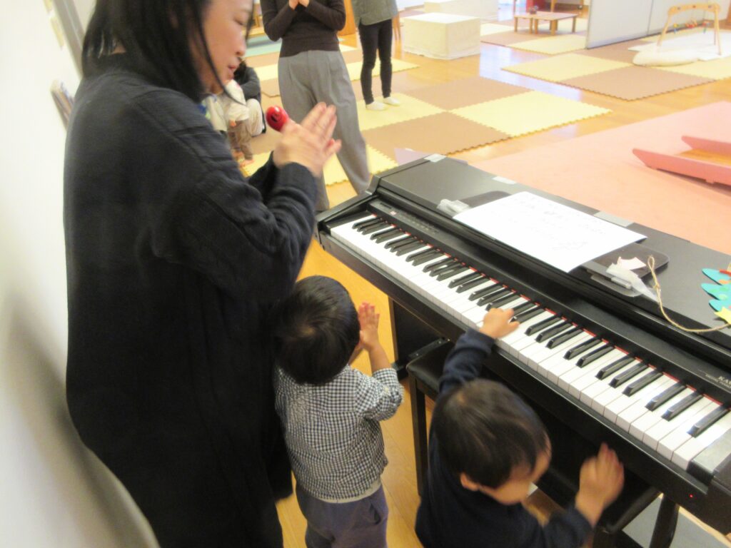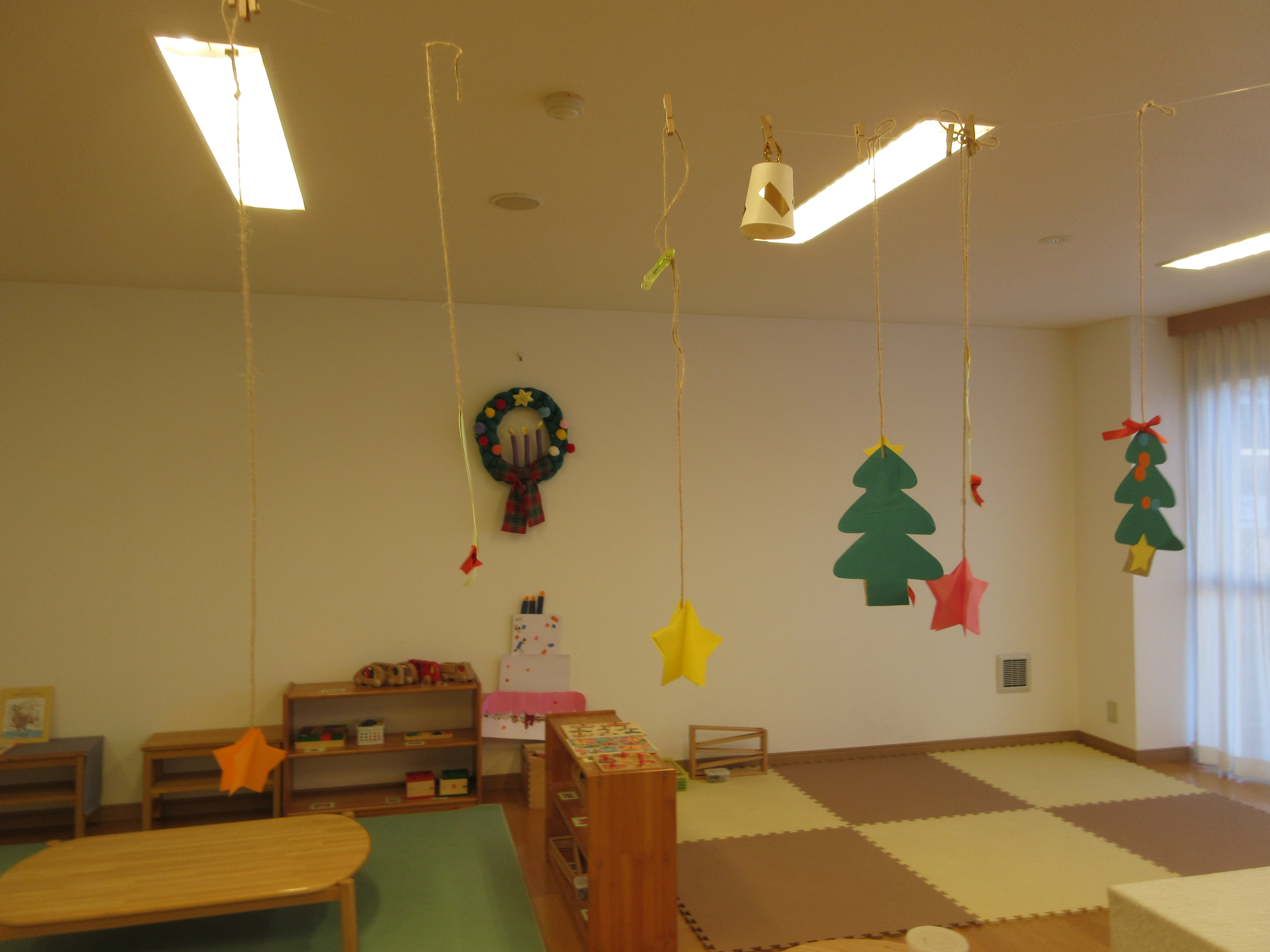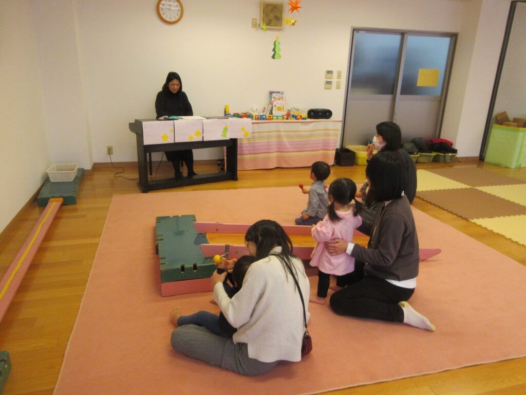 「親子ひろばのクリスマス」 こどもの木かげ地域支援事業 2025.12.19 こどもの木かげ地域支援事業トピックス地域支援トピックス新着情報 12月の親子ひろばは、クリスマスツリーやクリスマスケーキにシールを貼る製作をして過ごしました。 18日(木)今年最後の親子ひろばでは、小さなクリスマス会を行いました。スタッフが弾くクリスマスソングに合わせて、鈴やカスタネットでの楽器演奏を楽しみました。保育園より、クリスマスカードのプレゼントもありました。 2026年最初の親子ひろばは、1月8日(木)から始まります。また来年も、どうぞよろしくお願いいたします。