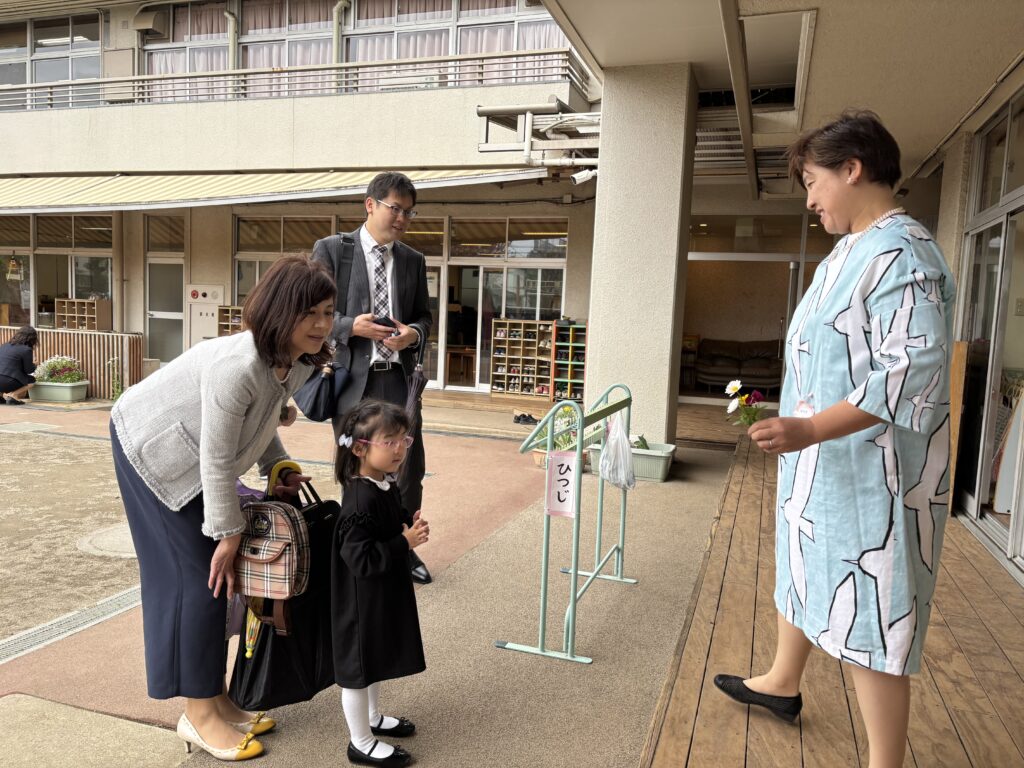 これから一緒に過ごす、子どもたちの拠り所になる保育者が紹介されました。チューリップの歌と園歌にこにこのたねをみんなで歌って、入園式は終わりました。