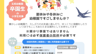 3月20日、春分の日に2025年度の卒園式を行いました。来賓や保護者や保育者の見守る中、子どもたちは緊張しながらも堂々と保育証書を受け取り、楽しかったことを発表しました。3年間の思い出が詰まったスライドショーをみて楽しかった幼稚園での生活を...