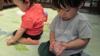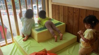 1歳児・すみれぐみの子どもたちは、夏休み中に行われていた学園の工事を窓にくっついて興味津々で見ていました。工事の車が入ってくると「トラックきた」「こうじ!」「こうじ、がんばってー」と部屋から応援していました。ある日、工事の人が工事用のネット...