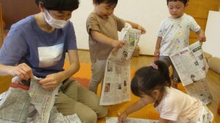 1歳児・すみれぐみの子どもたちはある日、おとなが子どもたちに新聞紙を1枚ずつ手渡すと、まずMちゃんが「あ、カレーライス!」とおいしそうな写真を見つけて、Sちゃんは「カエル、傘さしている」とイラストを見つけてにっこりしていました。自分で見つけ...