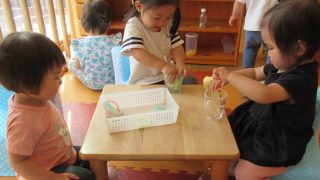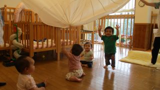 0歳児・つくしぐみの子どもたちは梅雨に入っても元気に過ごしています。先日、大人がパルバルーン(円形の布)を持って揺らしてみました。下に入って、大きな布が膨らんだりしぼんだりする様子を見上げたり、風を感じて「キャッキャッ」と腕を伸ばす子もいま...